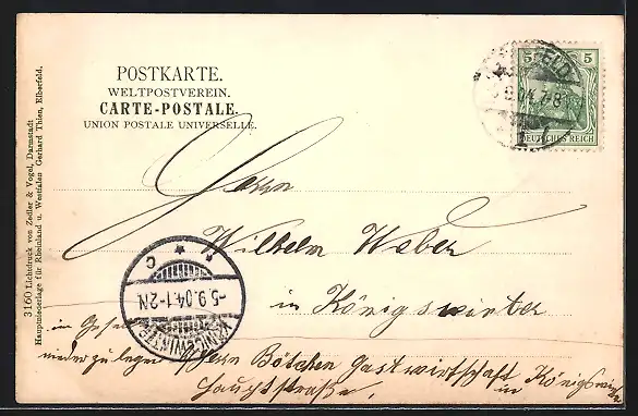 alte Ansichtskarte, gelaufen 1904, guter Zustand
