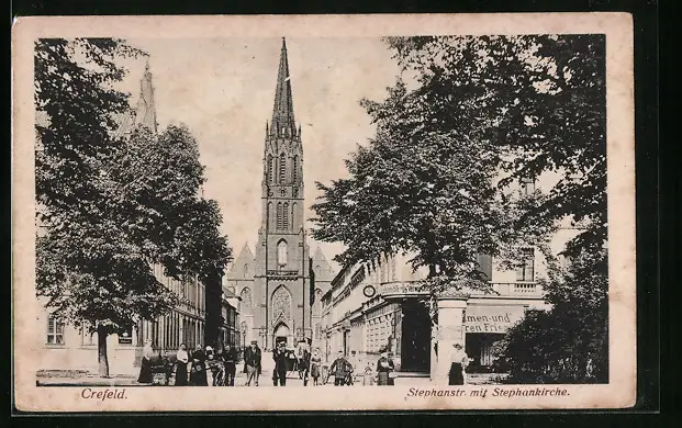 AK Crefeld, Stephanstrasse mit Stephankirche