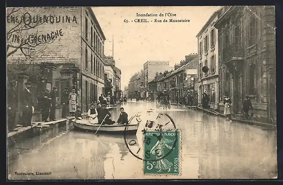 AK Creil /Oise, Inondation de l`Oise, Rue de Montataire