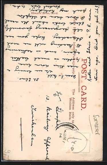 alte Ansichtskarte, gelaufen, Briefmarke entfernt, rückseitig Oberflächenschaden, guter Zustand