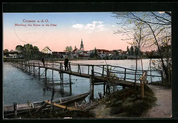AK Crossen a. d. O., Mündung des Bober in die Oder