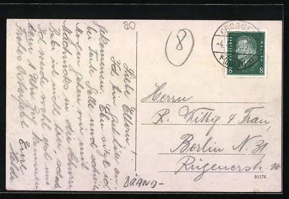 alte Ansichtskarte, gelaufen 1937, Abriebspur re. oben, kleiner Einriss li. unten, guter Zustand