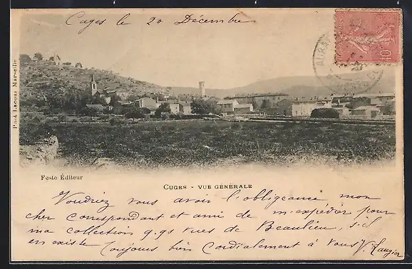 AK Cuges, Vue générale du village et des collines environnantes