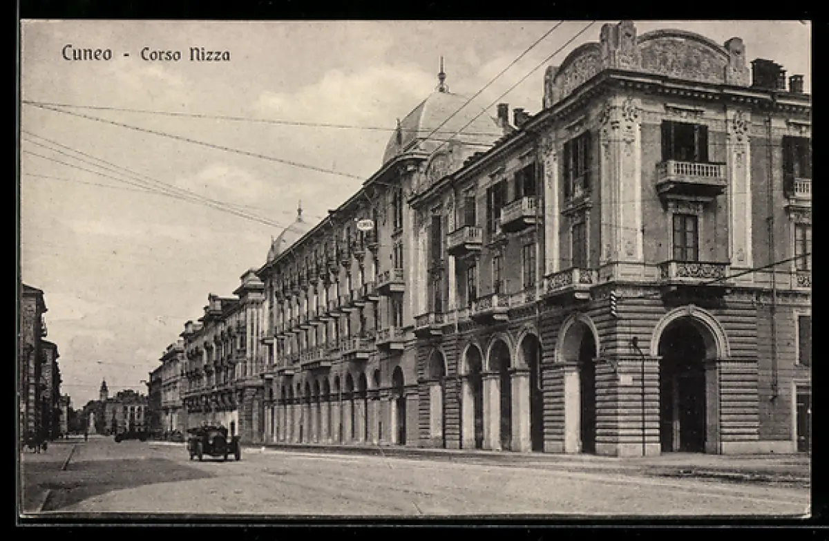 AK Cuneo, Corso Nizza con edifici storici e auto d`epoca