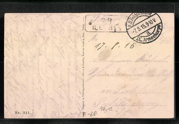 gelaufen als Feldpost 1915, Stempelspur, guter Zustand