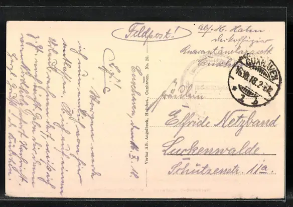 alte Ansichtskarte, gelaufen als Feldpost 1918, Einriss unten, Eckknick unten rechts, guter Zustand