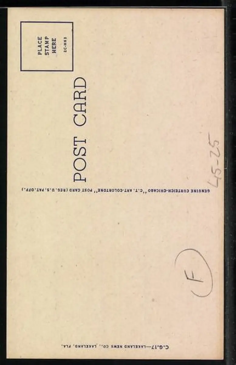 Personenbezogene Daten auf der Rückseite der Karte wurden durch blauen Textmarker unkenntlich gemacht. Die blauen Stellen sind auf die Vorderseite durchgeweicht und wirken sich negativ auf das Postkartenfoto aus