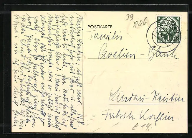 alte Ansichtskarte, gelaufen 1935, Eckknick re. oben, guter Zustand