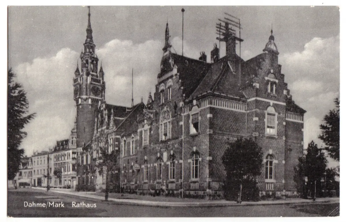 Ansichtskarte Dahme Mark Partie am Rathaus Erhaltung I-II postalisch gelaufen, gestempelt: Dahme (Mark), 23.7.59 Druckvermerk: 1958 Herstellungsland: DDR Verlag: Lichtbild-Schinke KG, Zeitz