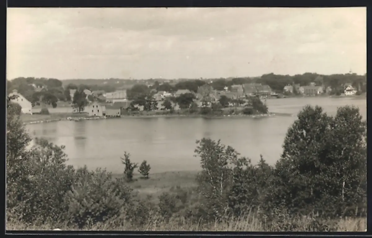 AK Damariscotta, ME, Ortspanorama mit Gewässer