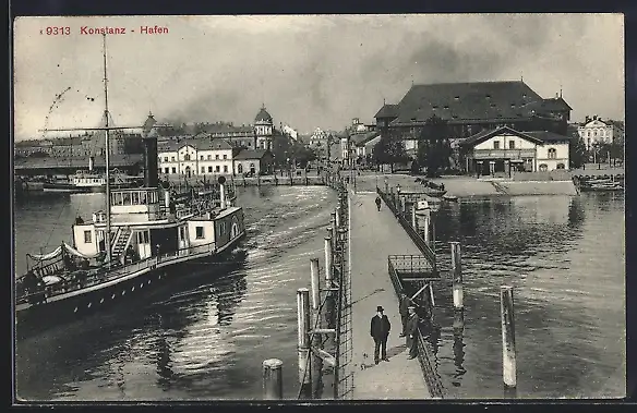 AK Dampfer auf dem Bodensee im Konstanzer Hafen