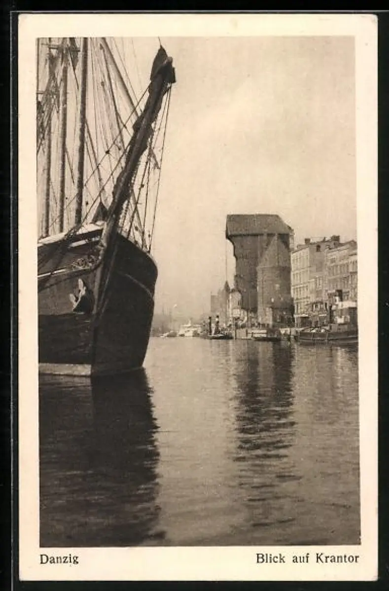 AK Danzig / Gdansk, Hafenpartie, Blick auf Krantor