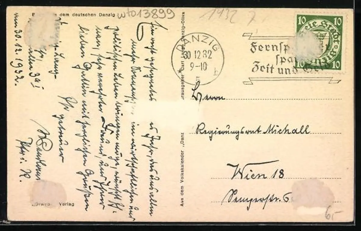 gelaufen 1932, rückseitig Klebe- und Papierreste, rückseitig Oberflächenschaden, guter Zustand