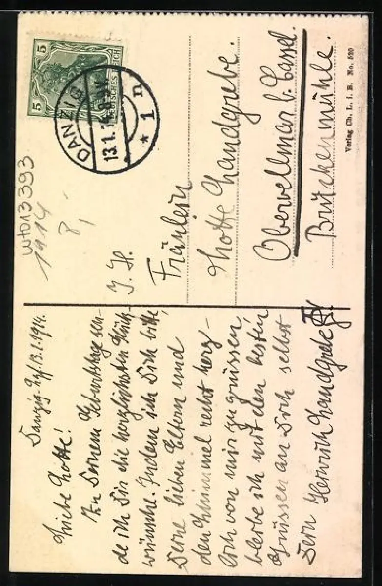 alte Ansichtskarte, gelaufen 1914, Stempelspur, guter Zustand