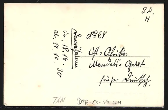 Personenbezogene Daten auf der Rückseite der Karte wurden durch blauen Textmarker unkenntlich gemacht. Die blauen Stellen sind auf die Vorderseite durchgeweicht und wirken sich negativ auf das Postkartenfoto aus