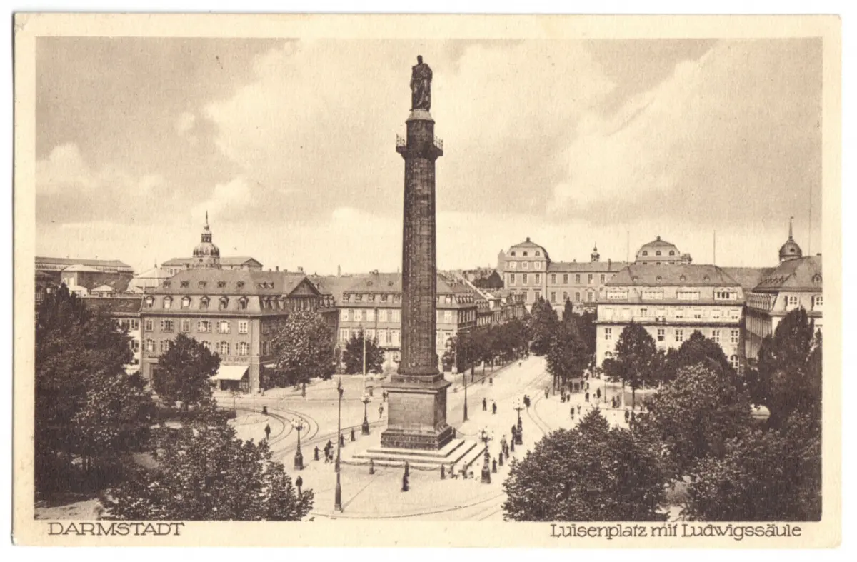 Ansichtskarte Darmstadt Luisenplatz mit Ludwigssäule Erhaltung I-II postalisch gelaufen, gestempelt: Darmstadt 2, 21.7.29 Verlag: Wilh. Gerling, Darmstadt - 696 Im Inland erfolgt die Zusendung versandkostenfrei Auslandsversand erfolgt über