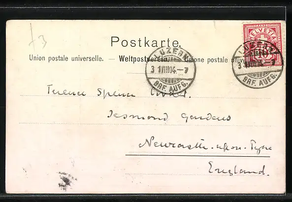 alte Ansichtskarte, gelaufen 1904, Eckknicke re., guter Zustand