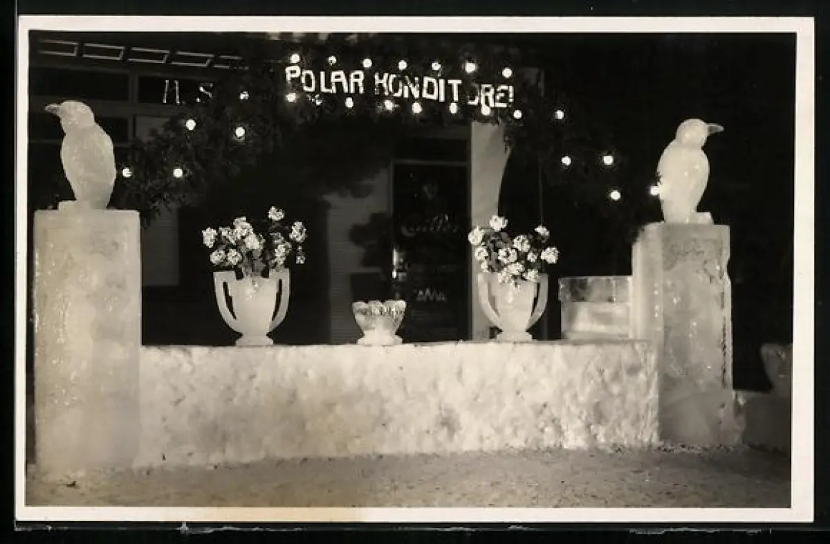 AK Davos, Davoser Winterfest 1930, Polar-Konditorei bei Nacht