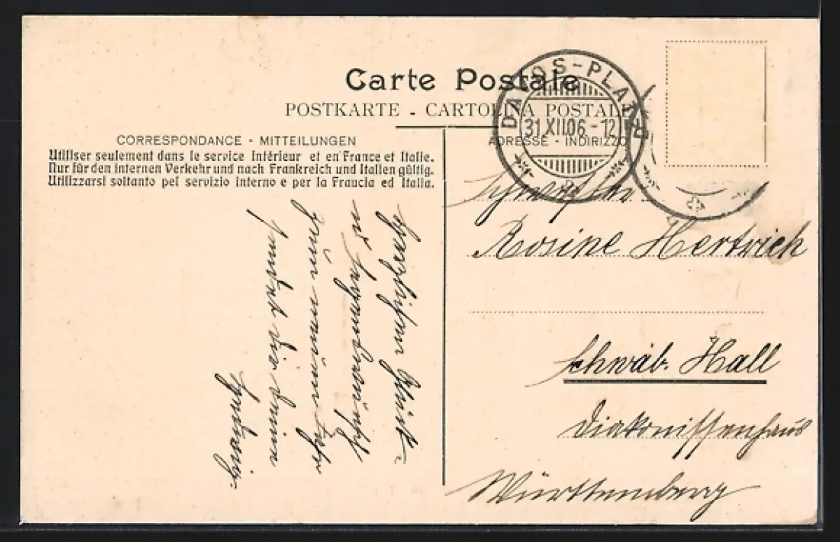 alte Ansichtskarte, gelaufen 1906, Briefmarke entfernt, guter Zustand
