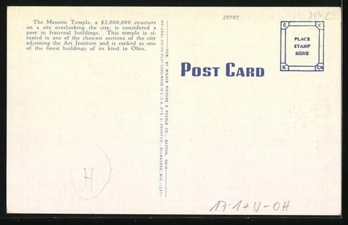 AK Dayton, OH, Masonic Temple, Bird`s Eye View