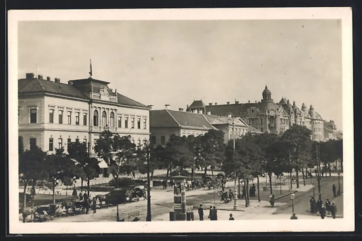 AK Debrecen, Franz Joseph Strasse mit Passanten