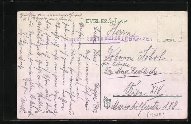 Personenbezogene Daten auf der Rückseite der Karte wurden durch blauen Textmarker unkenntlich gemacht. Die blauen Stellen sind auf die Vorderseite durchgeweicht und wirken sich negativ auf das Postkartenfoto aus