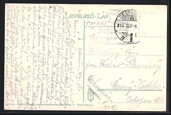 gelaufen 1915, Briefmarke entfernt, rückseitig Oberflächenschaden, guter Zustand