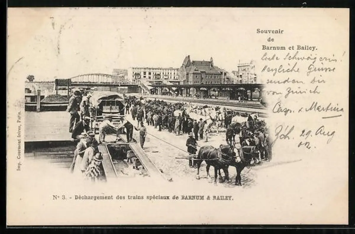 AK Déchargement des trains spéciaux de Barnum et Bailey