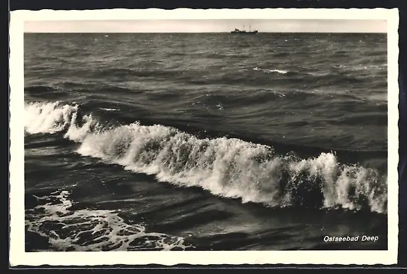 AK Deep, Wellen mit Schiff im Hintergrund