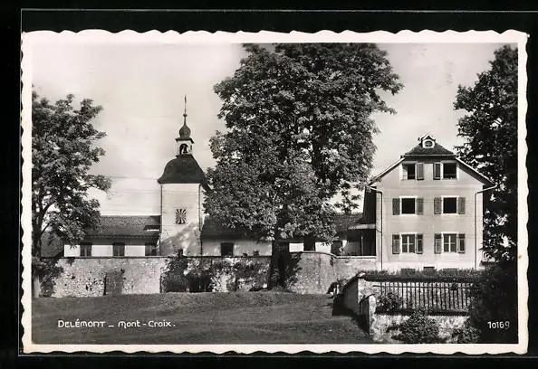 AK Delemont, Mont-Croix, an der Mauer hinter der Kirche