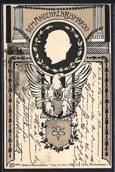 AK Dem Andenken Fürst Bismarcks, Adler mit Wappen, 1815-1898