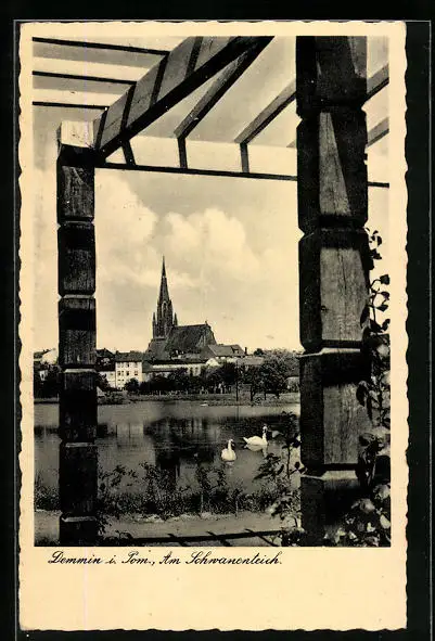 AK Demmin i. Pom., Schwanenteich mit Kirche