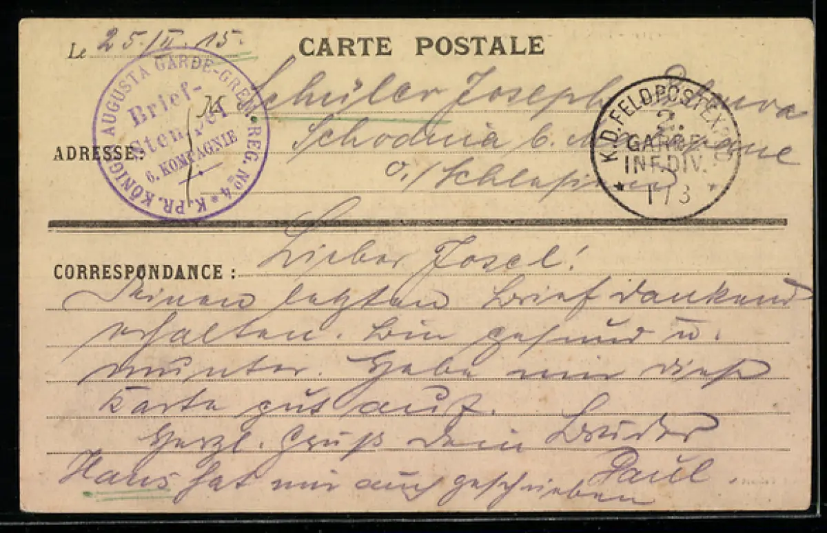alte Ansichtskarte, gelaufen 1915 als Feldpost, guter Zustand