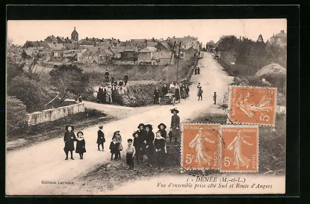 AK Denée, Vue d`ensemble prise coté Sud et Route d`Angers
