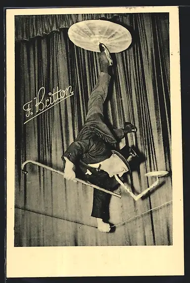 AK Der Akrobat F. Britton, Komisch-seriöser Drahtseilakt
