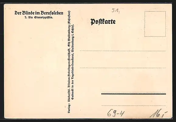 AK Der Blinde im Berufsleben, Die Stenotypistin