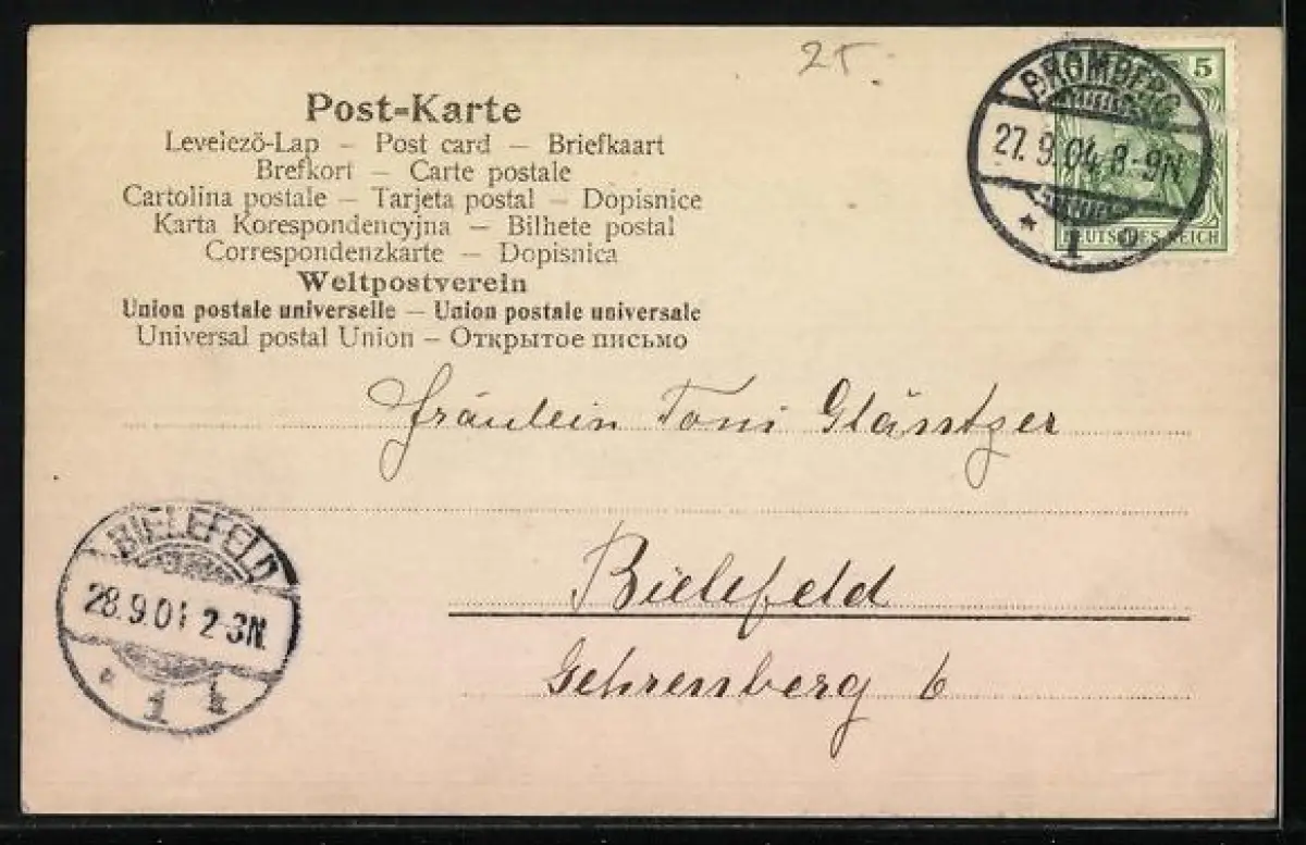 alte Ansichtskarte, gelaufen 1904, Eckknick re. oben, Stempelspur, guter Zustand