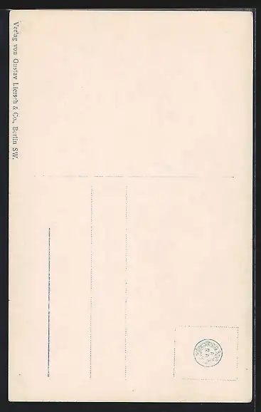 Personenbezogene Daten auf der Rückseite der Karte wurden durch blauen Textmarker unkenntlich gemacht. Die blauen Stellen sind auf die Vorderseite durchgeweicht und wirken sich negativ auf das Postkartenfoto aus