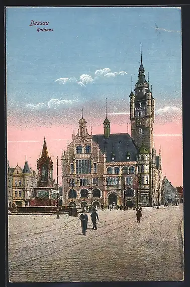 AK Dessau, Blick auf das Rathaus
