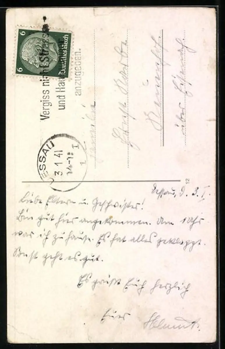 alte Ansichtskarte, gelaufen 1941, Eckknick unten rechts, sehr kl. Einriss oben mittig
