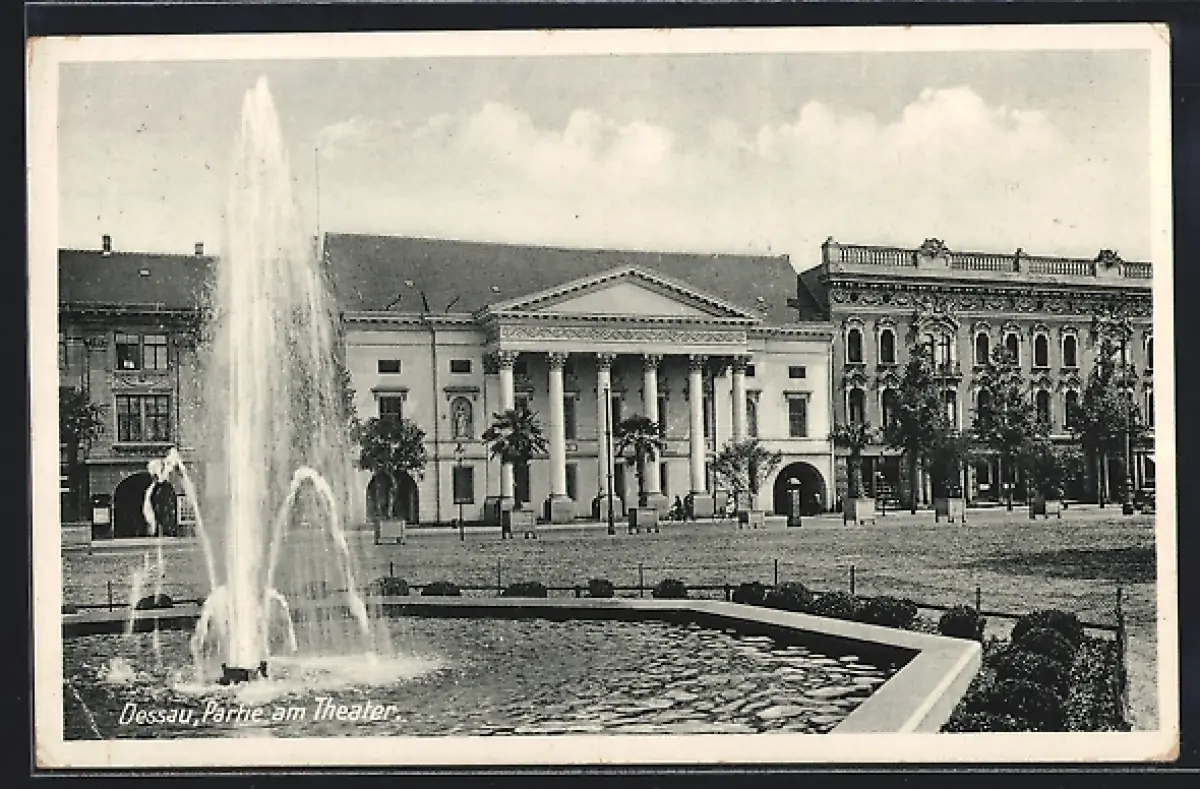 AK Dessau, Partie am Theater, Springbrunnen