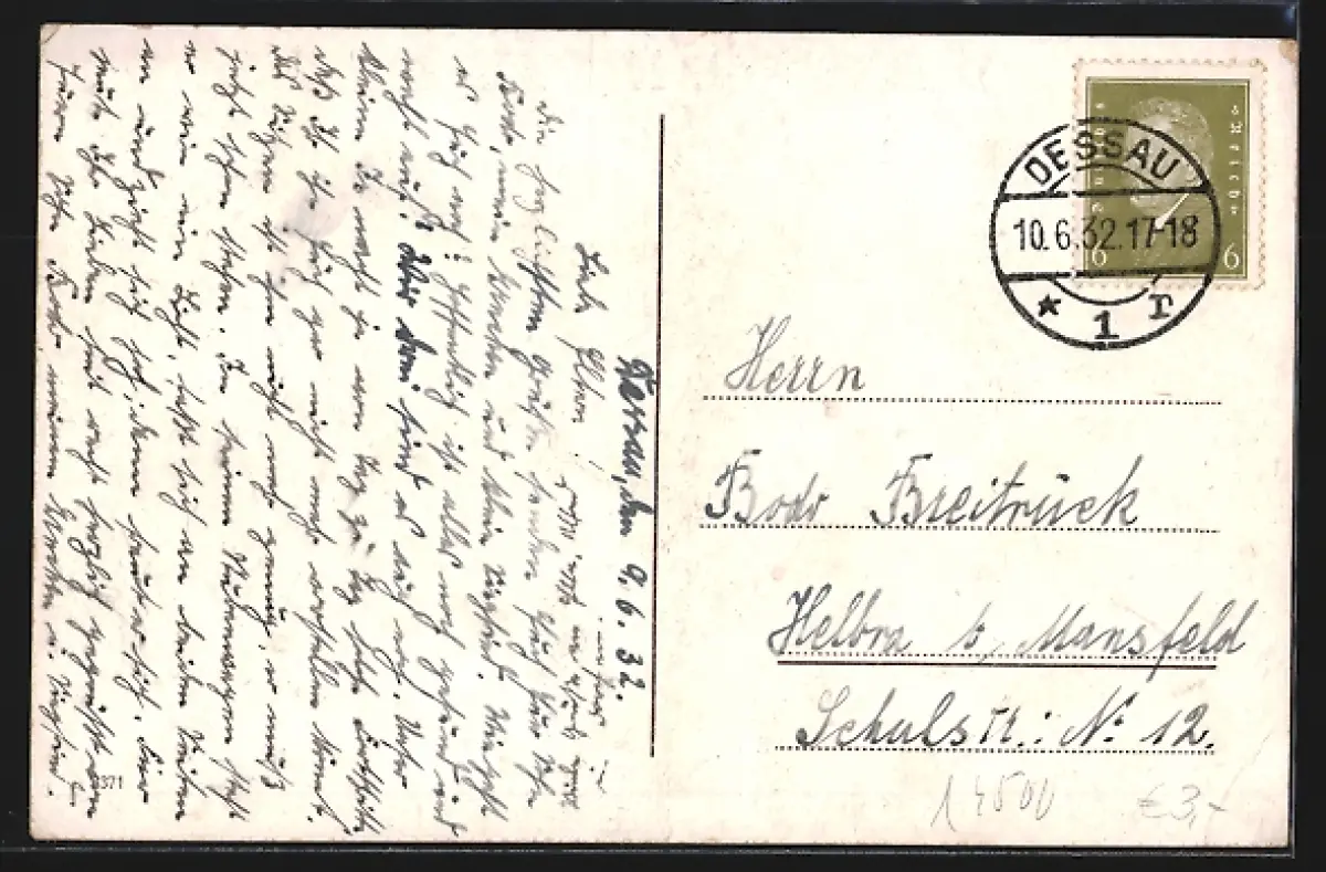 gelaufen 1932, Eckknicke oben rechts und unten links, guter Zustand