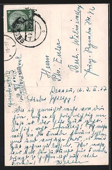 alte Ansichtskarte, gelaufen 1937, Stempelspur, guter Zustand