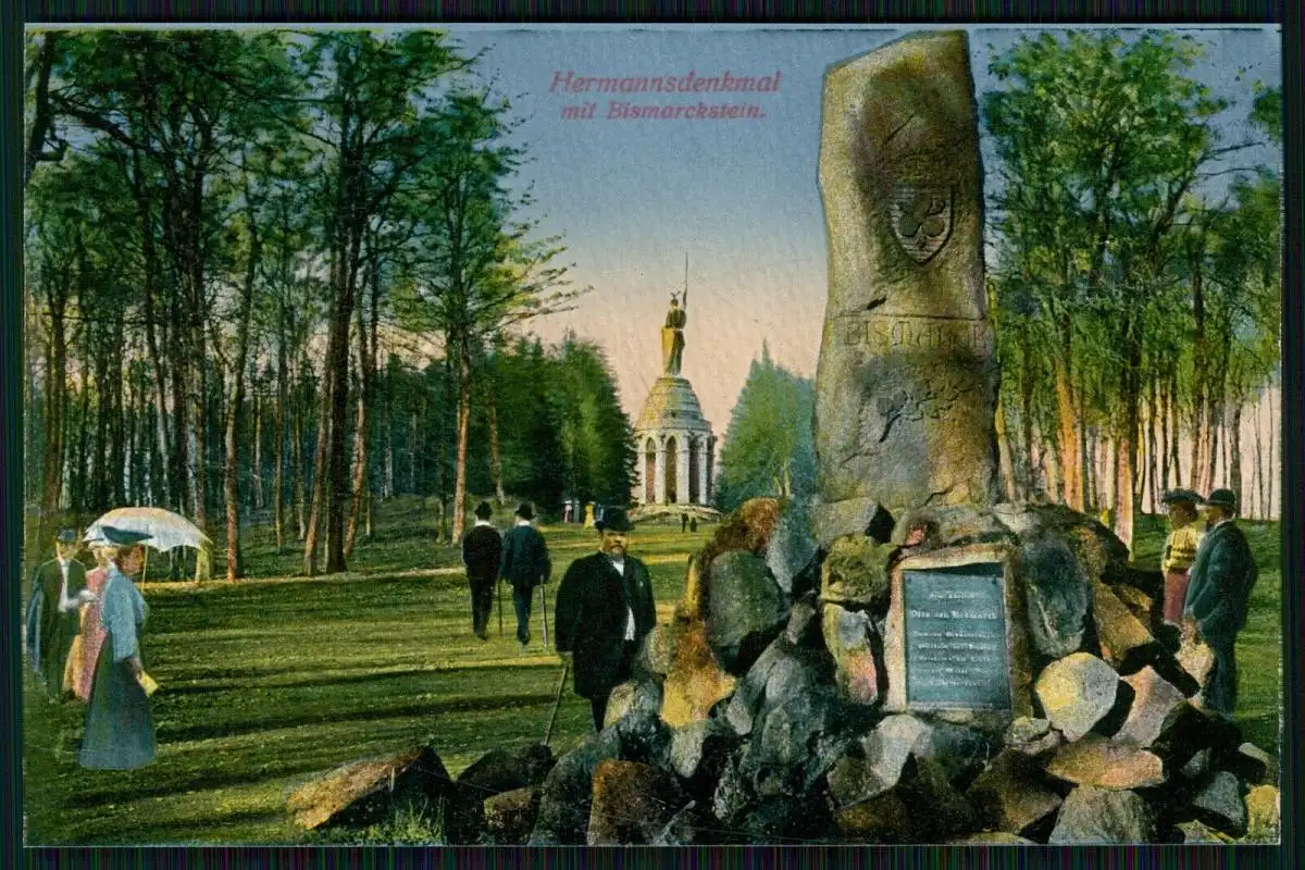 AK Detmold Lippe Teutoburger Wald Hermannsdenkmal mit Bismarckstein um 1910