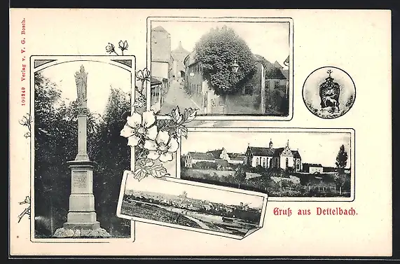 AK Dettelbach, Kirche, Denkmal, Strassenpartie
