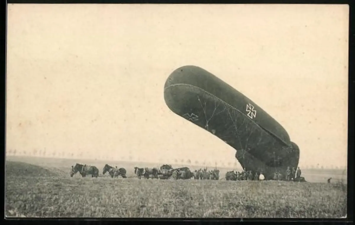 AK Deutscher Fesselballon mit Kennung der Fliegertruppe auf einem Feld