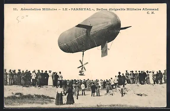 AK Deutscher Militär-Zeppelin Parseval beim Aufstieg