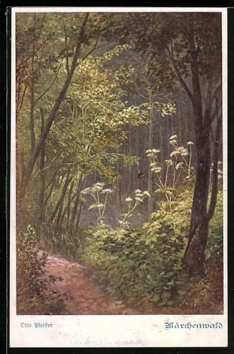 AK Deutscher Schulverein Nr. 886: Märchenwald mit flatternden Schmetterling