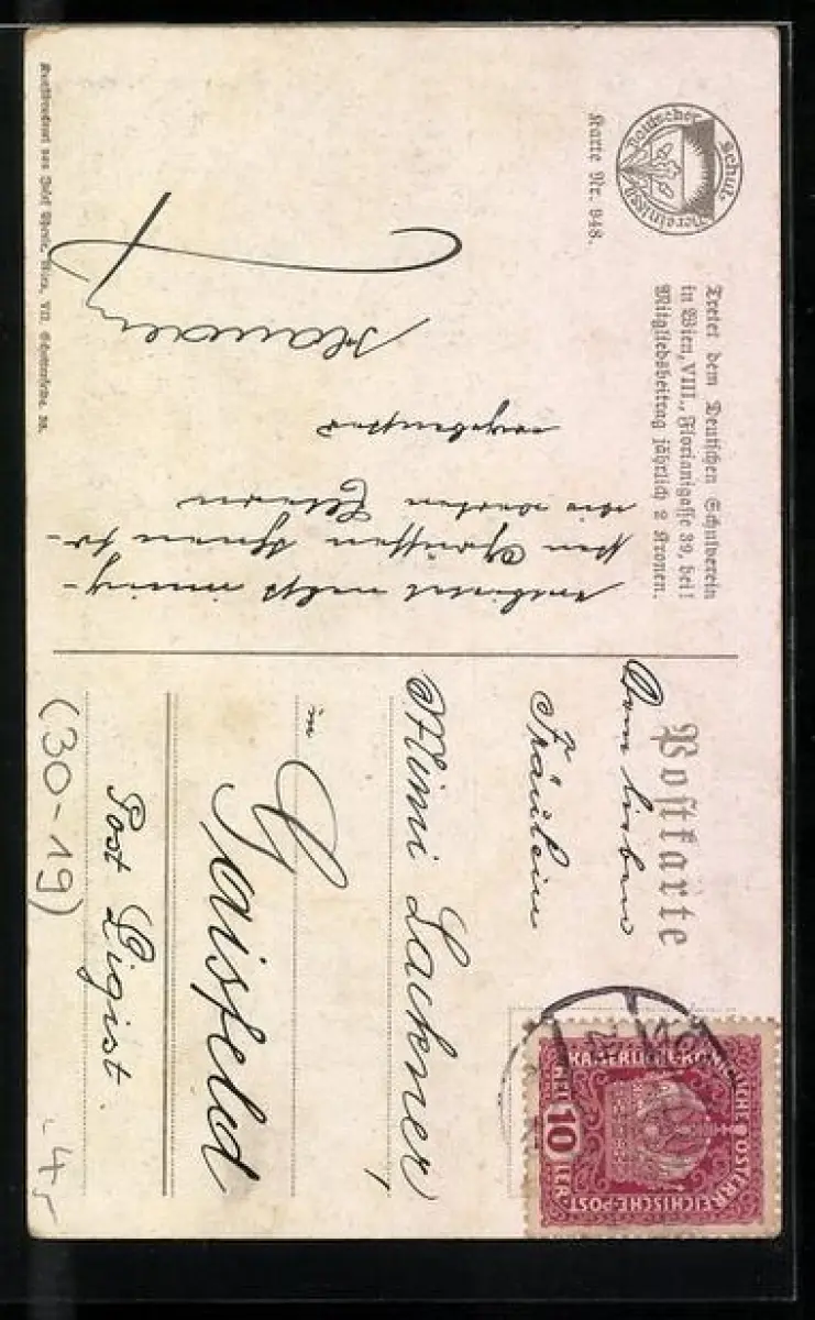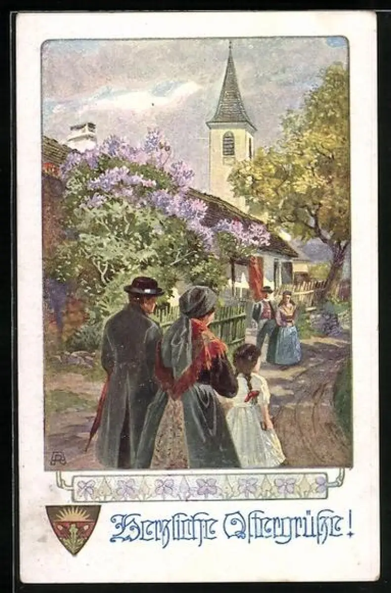 AK Deutscher Schulverein Nr. 948: Familie auf dem Weg zur Kirche