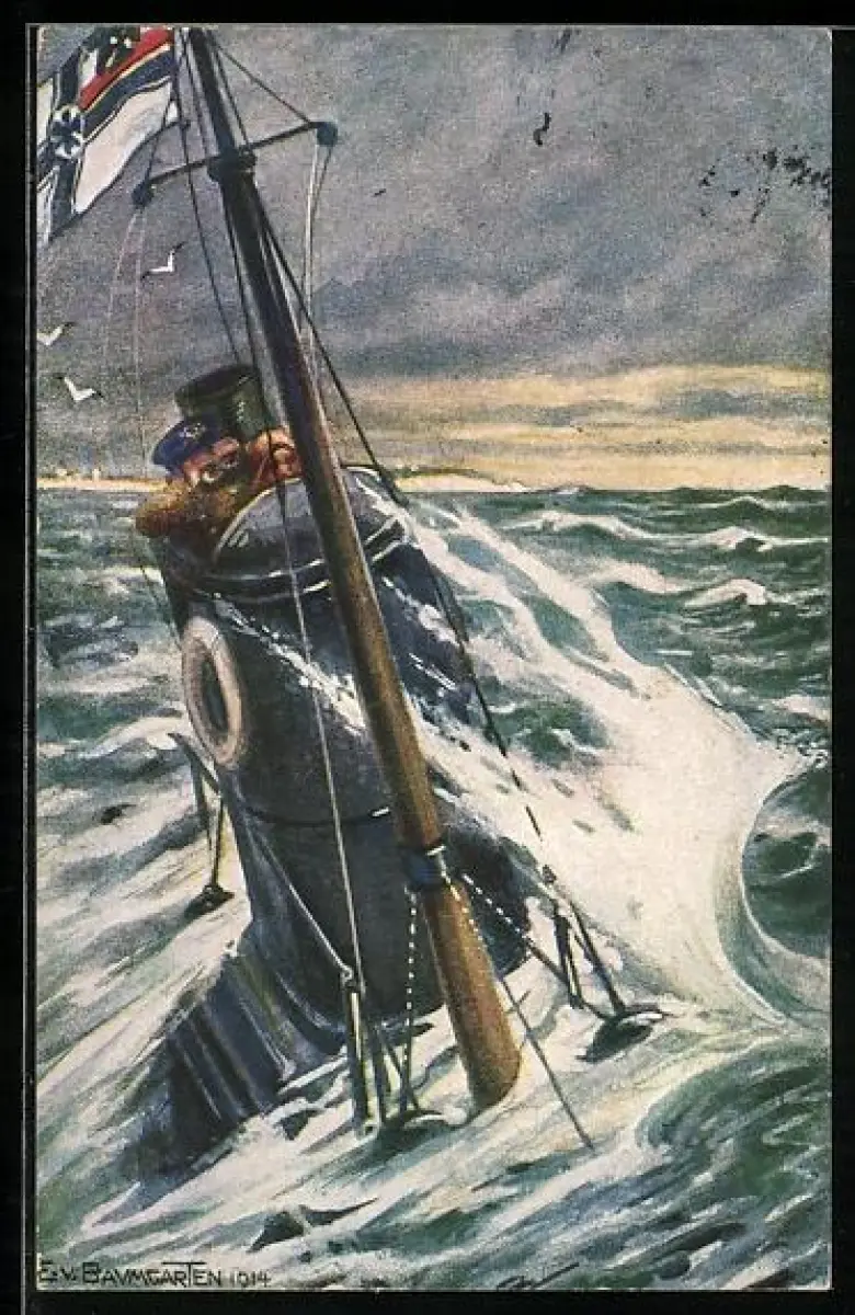 AK Deutsches Unterseeboot auf Patrouille an der englischen Küste, U-Boot